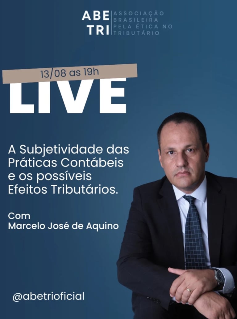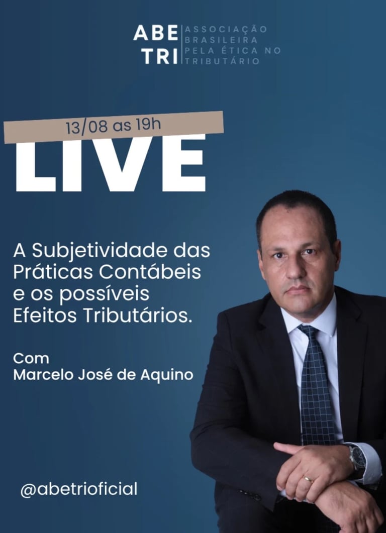No dia 13/08, às 19h, Marcelo José de Aquino abordou "A Subjetividade das Práticas Contábeis e os possíveis Efeitos Tributários" em uma live imperdível.